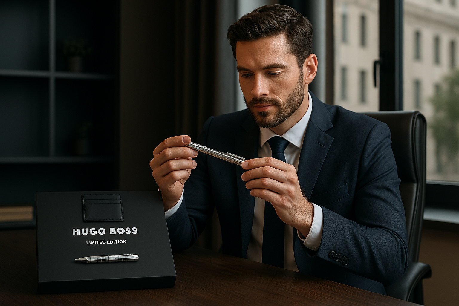 - Codzienna użyteczność – podpisy, notatki i spotkania firmowe to naturalna ekspozycja logo.
