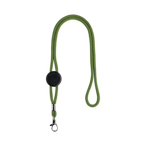 - Smycz DOUBLE-LANY – 20 mm RPET, dwa karabińczyki obrotowe 360°.