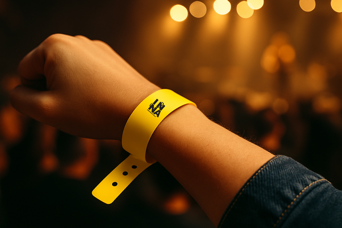 Źródło zdjęcia głównego: Opaska winylowa na nadgarstek z nadrukiem logo.