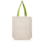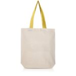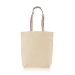 Klasyczna torba bawełniana w naturalnym kolorze z dwoma długimi, kolorowymi uchwytami.