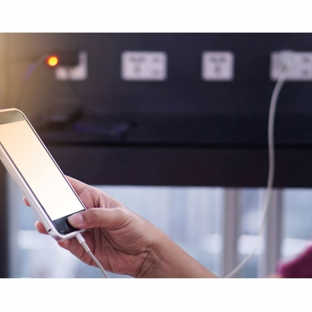 Uniwersalny adapter zasilania wykonany z plastiku, który spełnia standardy zasilania większości krajów na świecie (US, UK, AUS, EU).