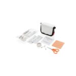 Apteczka w pokrowcu z przednią kieszonką i mocowaniem do paska, główna przegroda na zamek, 14 el., w tym: bandaż trójkątny, bandaż PTB, nożyczki, 4 plastry, 4 płatki nasączone alkoholem, 2 agrafki oraz taśma, ślad węglowy produktu: 0,85 kg CO2