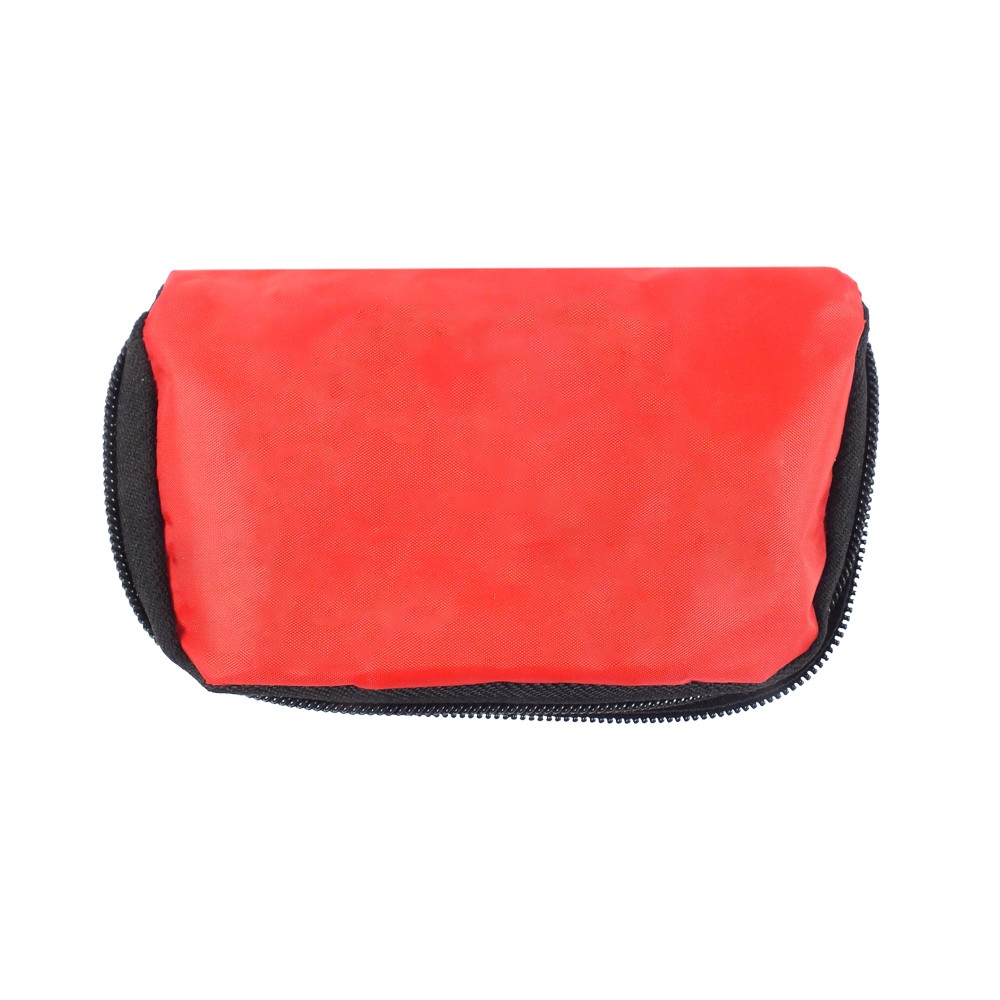 Apteczka w pokrowcu, 16 el., opatrunek nieprzylegający, plastry (5 małych, 1 duży i 2 średnie), płatek nasączony alkoholem, płatek antyseptyczny, rolka taśmy, bandaż trójkątny z 2 agrafkami, duża i mała rolka bandażu, nożyczki