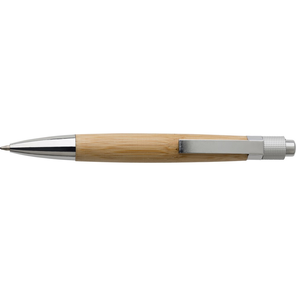 Bambusowy długopis ze srebrnymi elementami i metalowym klipem
