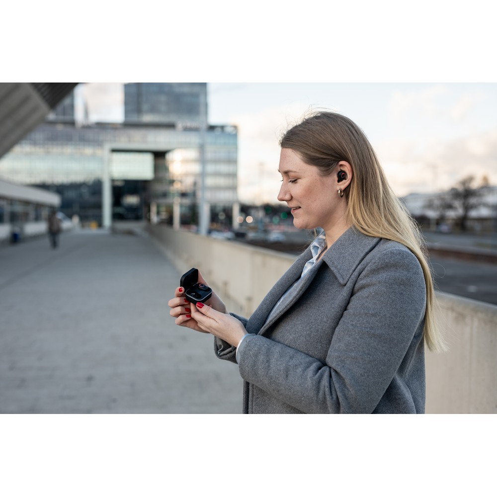 Słuchawki bezprzewodowe 2x40 mAh w etui ze stacją ładującą słuchawki 300 mAh, douszne, BT 5.1, etui ładujące z cyfrowym wskaźnikiem poziomu naładowania etui, funkcja odbierania połączeń, wbudowany mikrofon, ładowane przez USB, czas pracy: >2h, zasięg do 10 m, kabel USB-C w komplecie