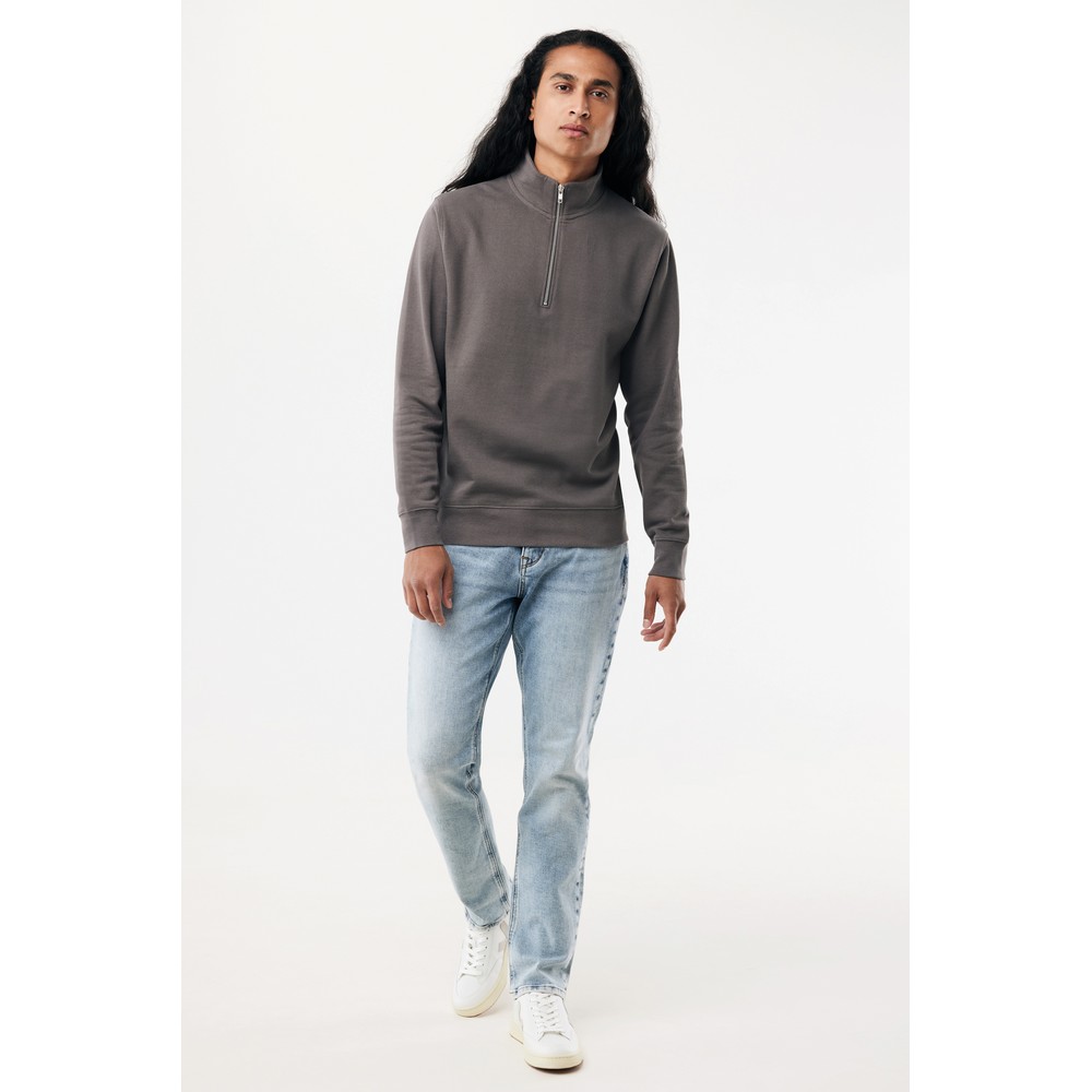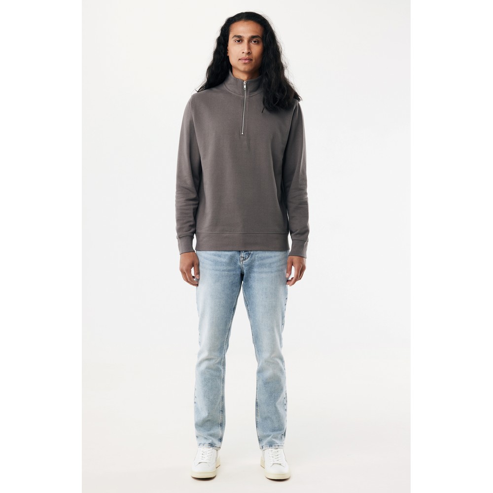 Bluza, unisex, długie rękawy, nowoczesny krój, kołnierz zapinany na zamek błyskawiczy, wykonana w 30% z bawełny z recyklingu i w 70% z bawełny organicznej o gramaturze 300 g/m2, posiada wbudowany znacznik AWARE™, który potwierdza wykorzystanie materiałów z recyklingu, posiada kod QR na metce, który prowadzi do cyfrowego paszportu produktu, 2% wpływów z każdego sprzedanego produktu jest przekazywane na rzecz Water.org