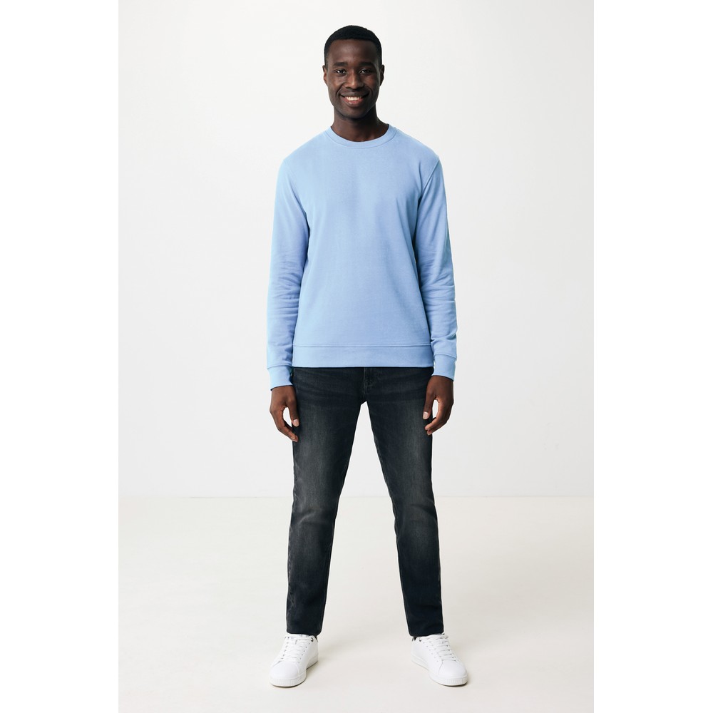Bluza, unisex, długie rękawy, regularny krój, splot Brushed Sweat, okrągły dekolt, wykonana w 50% z bawełny z recyklingu i w 50% z bawełny organicznej o gramaturze 340 g/m2, bez dodatku poliestru, posiada wbudowany znacznik AWARE™, który potwierdza wykorzystanie materiałów z recyklingu, posiada kod QR na metce, który prowadzi do cyfrowego paszportu produktu, 2% wpływów z każdego sprzedanego produktu z kolekcji Impact jest przekazywane na rzecz Water.org