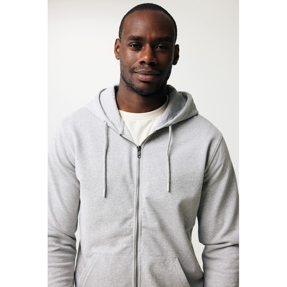 Bluza z kapturem, zapinana na zamek, unisex, regularny krój, splot Brushed Sweat, długie rękawy, dwuwarstwowy kaptur, wykonana w 50% z bawełny z recyklingu i w 50% z bawełny organicznej o gramaturze 340 g/m2, bez dodatku poliestru, posiada wbudowany znacznik AWARE™, który potwierdza wykorzystanie materiałów z recyklingu, posiada kod QR na metce, który prowadzi do cyfrowego paszportu produktu, 2% wpływów z każdego sprzedanego produktu z kolekcji Impact jest przekazywane na rzecz Water.org