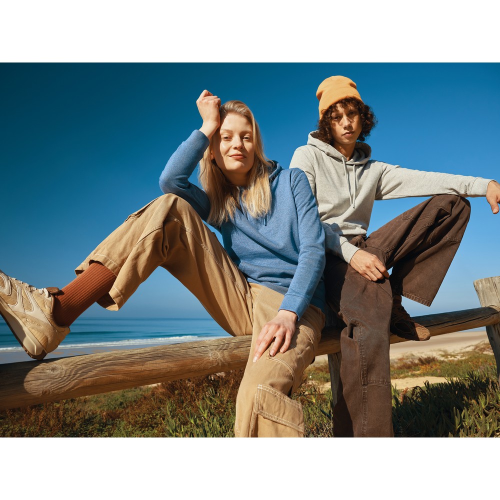 Bluza z kapturem, unisex, regularny krój, splot Brushed Sweat, długie rękawy, dwuwarstwowy kaptur, niebarwiona bawełna wykonana w 50% z bawełny z recyklingu i w 50% z bawełny organicznej 350 g/m2, bez dodatku poliestru, posiada wbudowany znacznik AWARE™, który potwierdza wykorzystanie materiałów z recyklingu, posiada kod QR na metce, który prowadzi do cyfrowego paszportu produktu, 2% wpływów z każdego sprzedanego produktu z kolekcji Impact jest przekazywane na rzecz Water.org, ślad węglowy produktu: 9,06 kg CO2