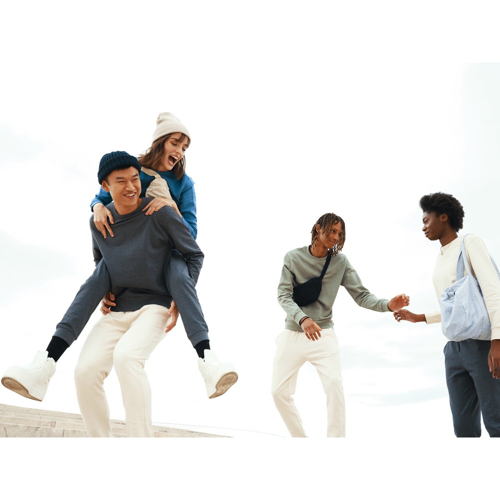 Bluza, unisex, długie rękawy, regularny krój, splot Brushed Sweat, okrągły dekolt, niebarwiona bawełna, wykonana w 50% z bawełny z recyklingu i w 50% z bawełny organicznej o gramaturze 340 g/m2, bez dodatku poliestru, posiada wbudowany znacznik AWARE™, który potwierdza wykorzystanie materiałów z recyklingu, posiada kod QR na metce, który prowadzi do cyfrowego paszportu produktu, 2% wpływów z każdego sprzedanego produktu z kolekcji Impact jest przekazywane na rzecz Water.org