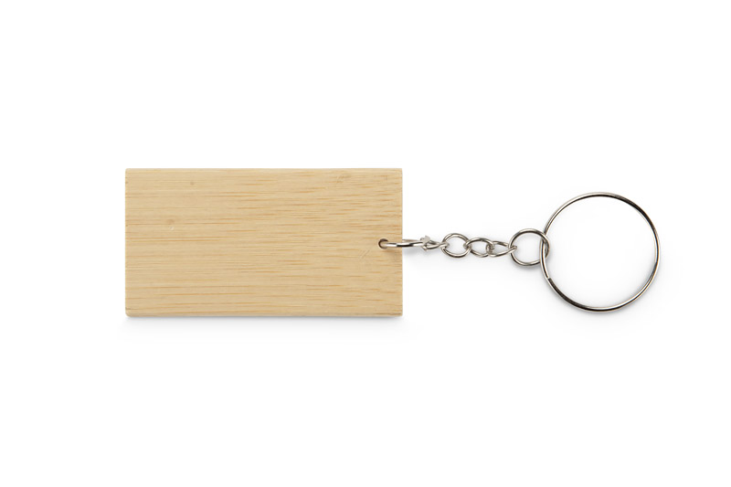 Brelok BAMKEY łączy bambusowy korpus z metalowym kółkiem, tworząc naturalne i estetyczne zestawienie materiałów.