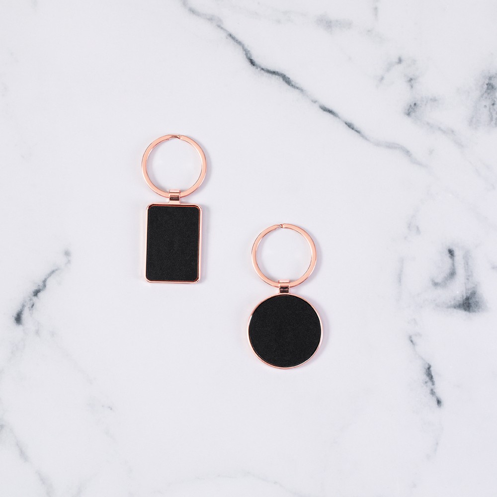 Brelok do kluczy, miedziane wykończenie (A-okrągły, B-prostokątny)