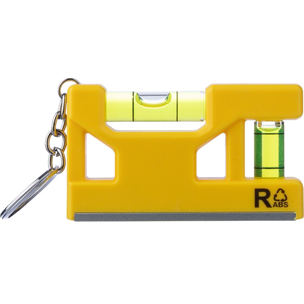 Brelok do kluczy, magnetyczne narzędzie wielofunkcyjne, oznaczenie rozmiaru z wierzchu, poziomica, linijka, posiada magnetyczny pasek na spodzie umożliwiający przymocowanie do metalowych powierzchni, zapakowany w brązowe kartonowe pudełko, ikona ABS na produkcie, produkt wykonany z ABS