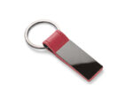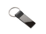 Elegancki dwustronny brelok wykonany z materiału skóropodobnego PU i metalu w kolorze grafitowym.