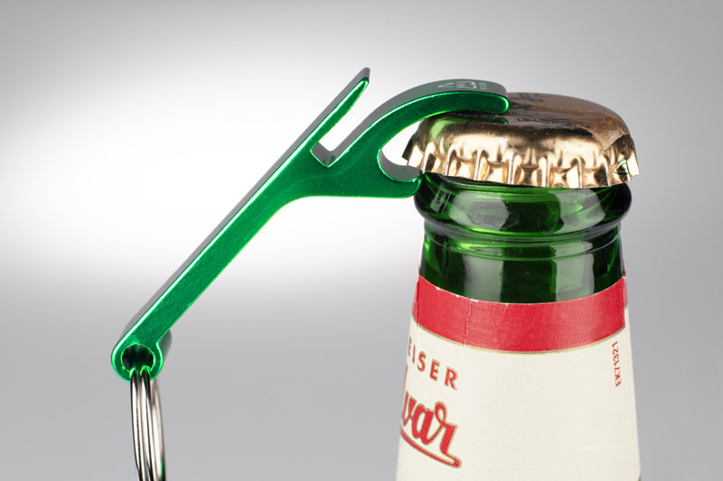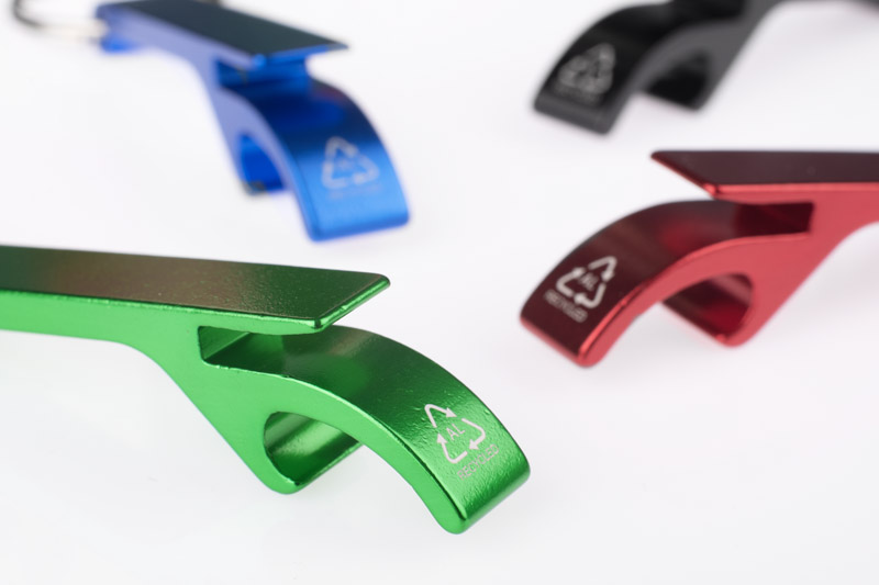 rALI to ekologiczny brelok wykonany z recyklingowanego aluminium, który pełni funkcję otwieracza do butelek i puszek.