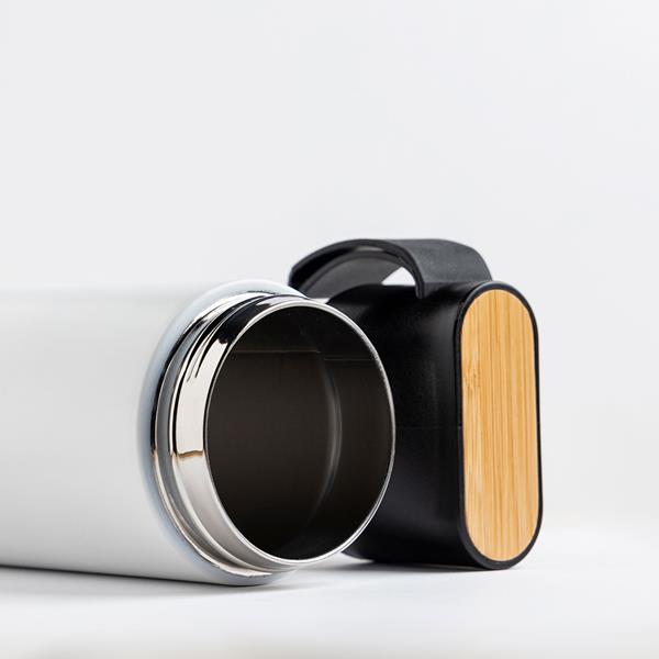Butelka 600ml termiczna z bambusowym detalem , utrzymuje ciepło do 12h i zimno do 24h