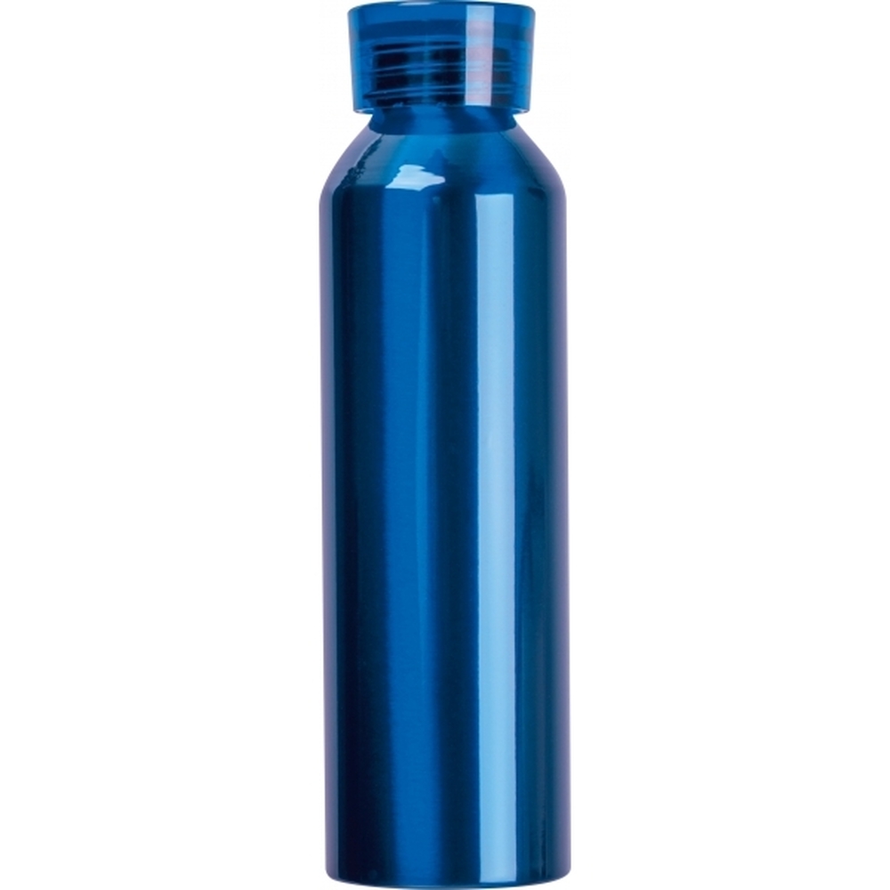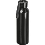 Butelka wykonana z aluminium pochodzącego z recyklingu, posiada półprzezroczystą zakrętkę z uchwytem do przenoszenia.