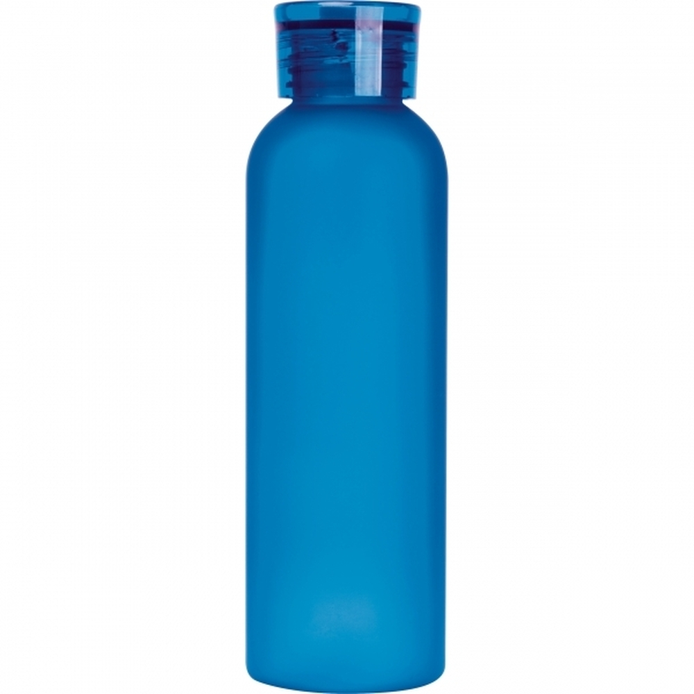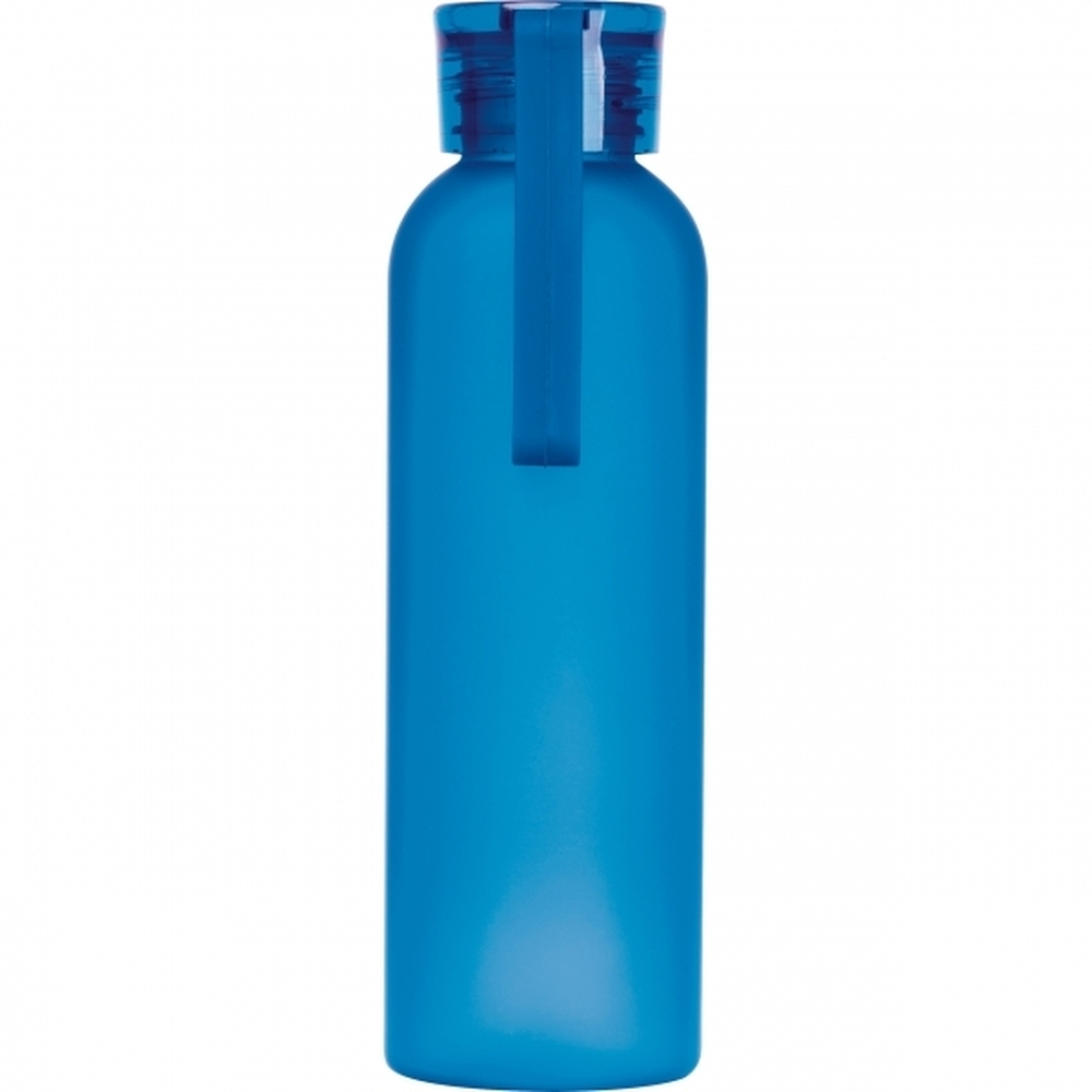 Butelka do picia wykonana z PET z gumowym uchwytem do noszenia na pokrywce i pojemnością 600 ml.