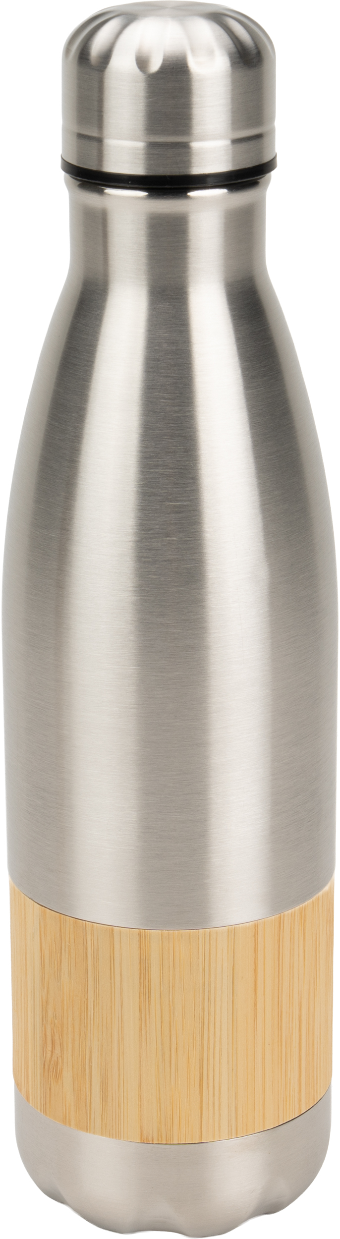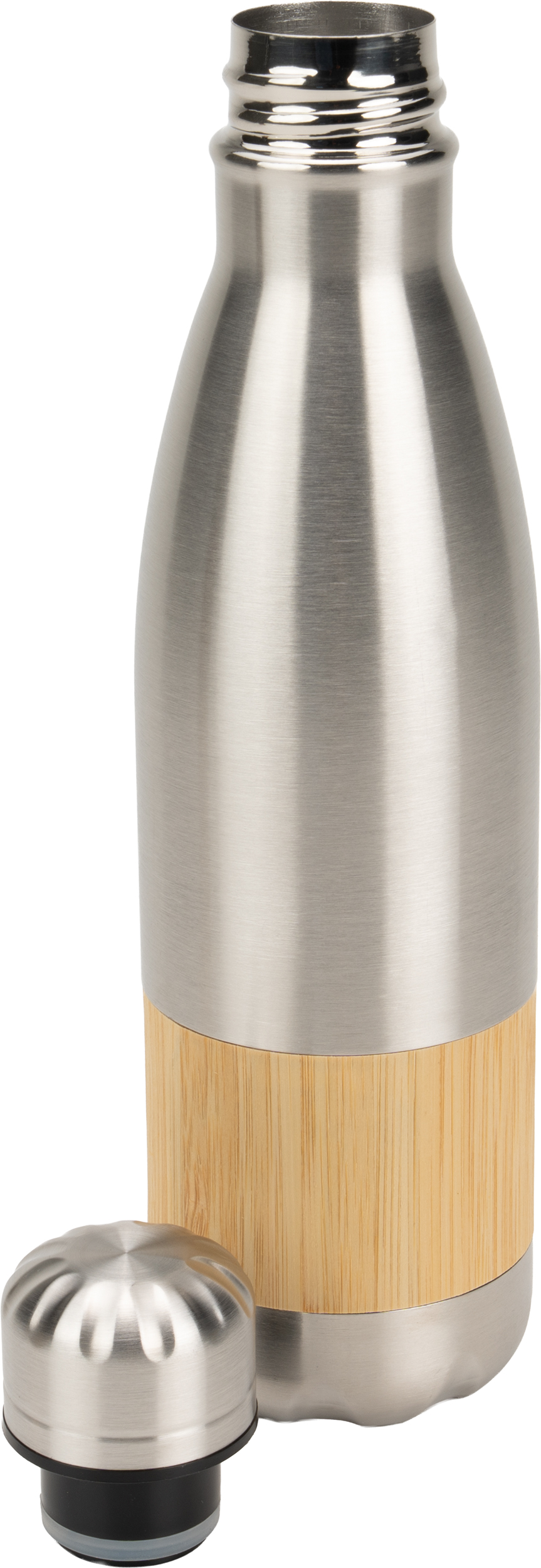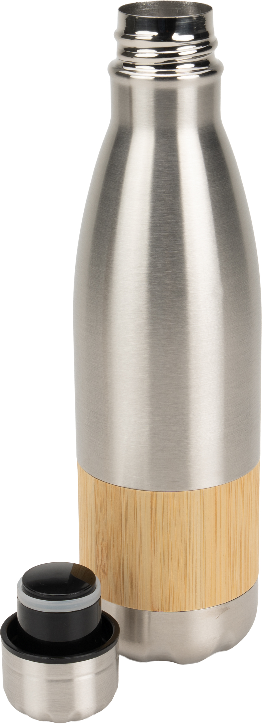 Butelka wykonana ze stali nierdzewnej z bambusowym elementem.
