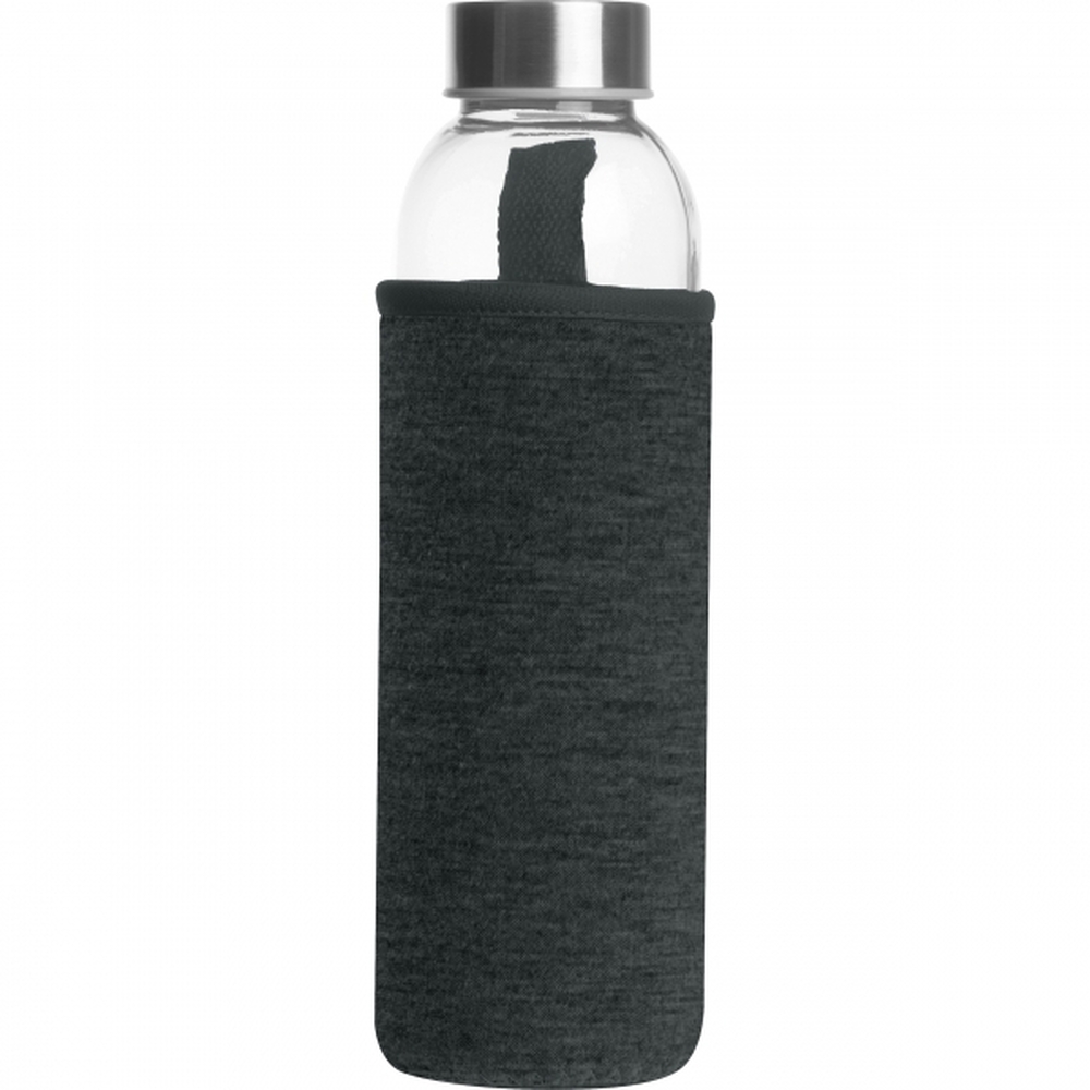 Szklana butelka z metalową zakrętką, w etui z neoprenu, o pojemności 500 ml.