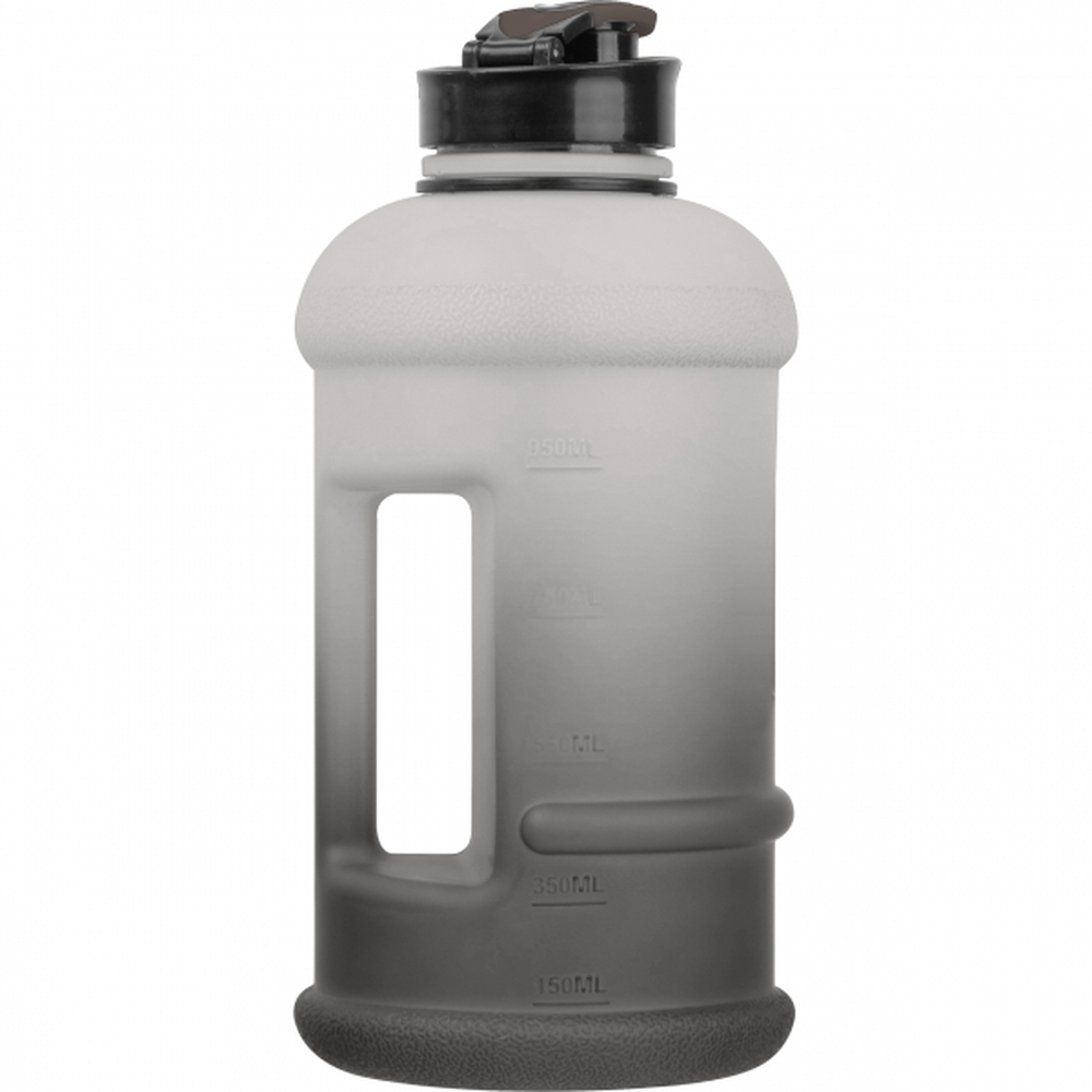 Bardzo duża butelka do picia wykonana z plastiku z przedziałką wskazującą ilość wypitej wody, o pojemności 1300 ml. Wgłębienia na butelce zapewniają pewny chwyt podczas picia, butelka pokryta materiałem soft-touch, przyjemnym w dotyku.