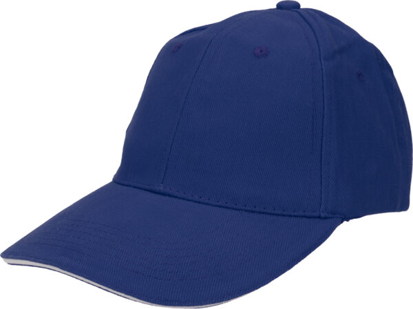 Czapka z daszkiem wykonana z bawełny, wyposażona w metalowe, regulowane zapięcie z tyłu.