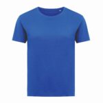 Koszulka damska, regularny krój, okrągły dekolt, krótkie rękawy, wykonana w 30% z bawełny z recyklingu i w 70% z bawełny organicznej o gramaturze 160 g/m2, posiada wbudowany znacznik AWARE™, który potwierdza wykorzystanie materiałów z recyklingu, posiada kod QR na metce, który prowadzi do cyfrowego paszportu produktu, 2% wpływów z każdego sprzedanego produktu z kolekcji Impact jest przekazywane na rzecz Water.org, ślad węglowy produktu: 2,85 kg CO2