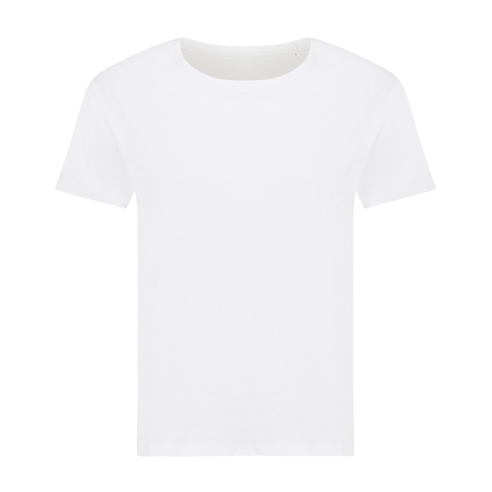 Koszulka damska, regularny krój, okrągły dekolt, krótkie rękawy, wykonana w 30% z bawełny z recyklingu i w 70% z bawełny organicznej o gramaturze 160 g/m2, posiada wbudowany znacznik AWARE™, który potwierdza wykorzystanie materiałów z recyklingu, posiada kod QR na metce, który prowadzi do cyfrowego paszportu produktu, 2% wpływów z każdego sprzedanego produktu z kolekcji Impact jest przekazywane na rzecz Water.org, ślad węglowy produktu: 2,92 kg CO2