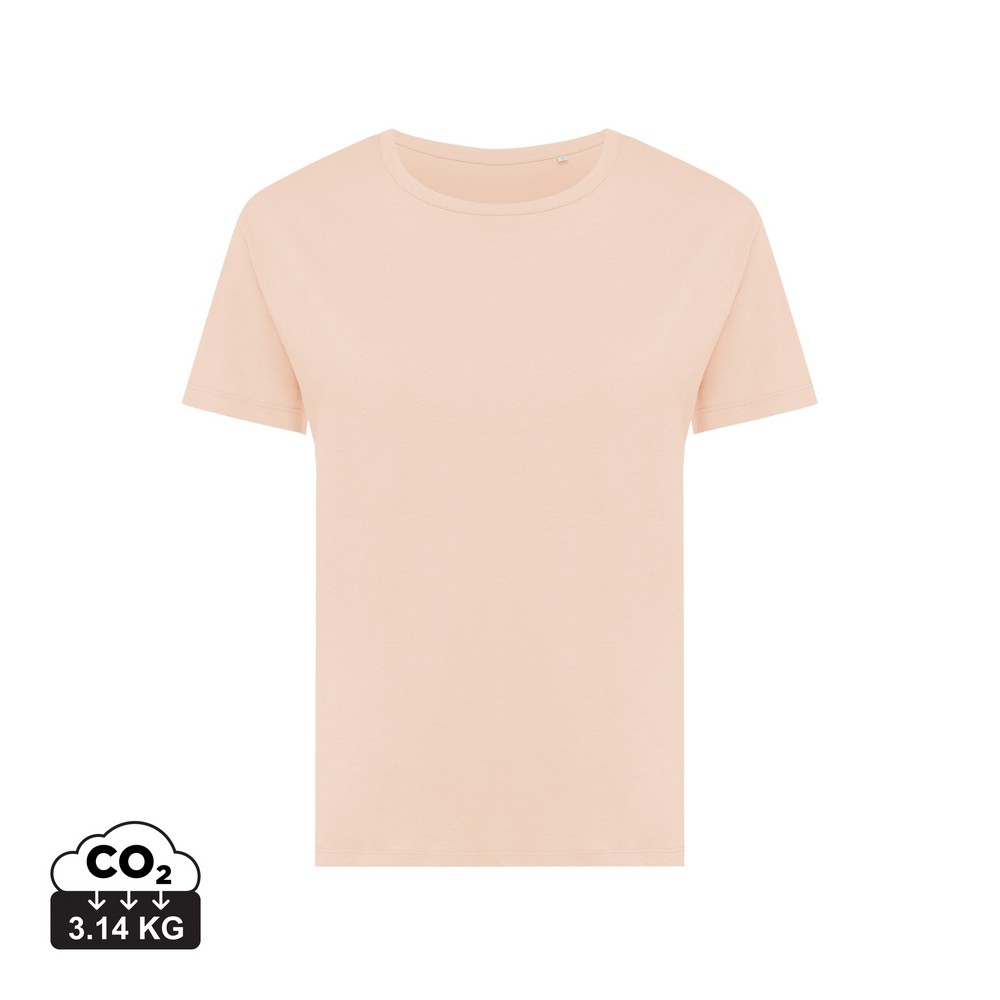 Koszulka damska, regularny krój, okrągły dekolt, krótkie rękawy, wykonana w 30% z bawełny z recyklingu i w 70% z bawełny organicznej o gramaturze 160 g/m2, posiada wbudowany znacznik AWARE™, który potwierdza wykorzystanie materiałów z recyklingu, posiada kod QR na metce, który prowadzi do cyfrowego paszportu produktu, 2% wpływów z każdego sprzedanego produktu z kolekcji Impact jest przekazywane na rzecz Water.org, ślad węglowy produktu: 3,14 kg CO2