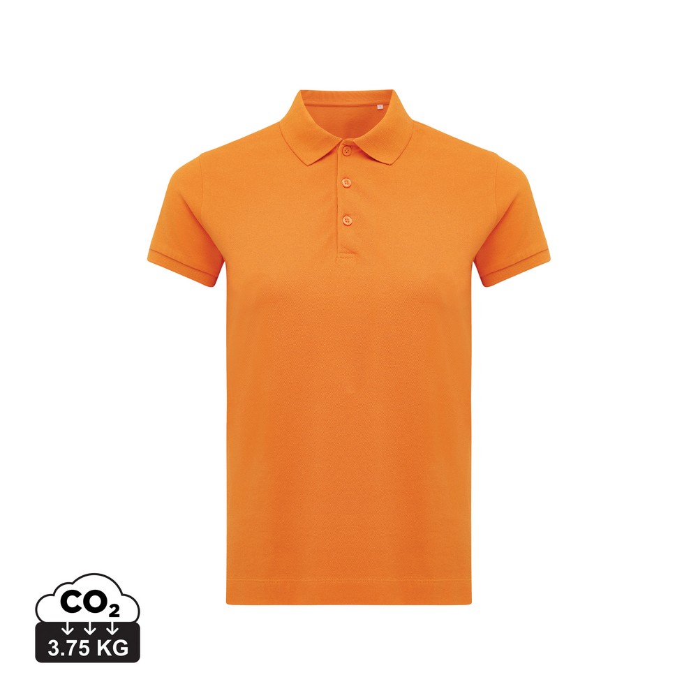 Koszulka polo, damska, zapięcie na 3 guziki, krój medium, splot Pique, krótkie rękawy, wykonana w 50% z bawełny z recyklingu i w 50% z bawełny organicznej o gramaturze 220 g/m2, bez dodatku poliestru, posiada wbudowany znacznik AWARE™, który potwierdza wykorzystanie materiałów z recyklingu, posiada kod QR na metce, który prowadzi do cyfrowego paszportu produktu, 2% wpływów z każdego sprzedanego produktu jest przekazywane na rzecz Water.org