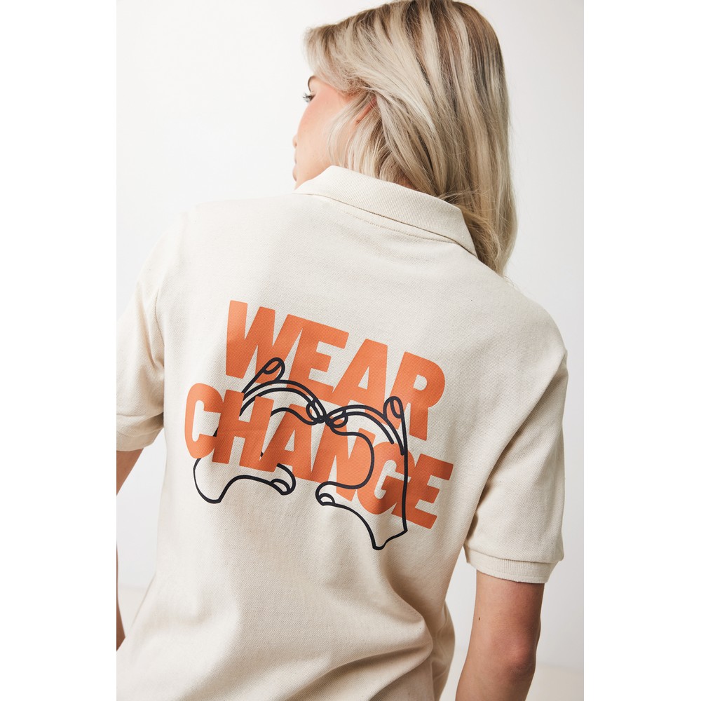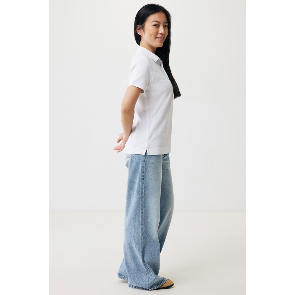 Koszulka polo, damska, zapięcie na 3 guziki, krój medium, splot Pique, krótkie rękawy, wykonana w 50% z bawełny z recyklingu i w 50% z bawełny organicznej o gramaturze 220 g/m2, bez dodatku poliestru, posiada wbudowany znacznik AWARE™, który potwierdza wykorzystanie materiałów z recyklingu, posiada kod QR na metce, który prowadzi do cyfrowego paszportu produktu, 2% wpływów z każdego sprzedanego produktu jest przekazywane na rzecz Water.org