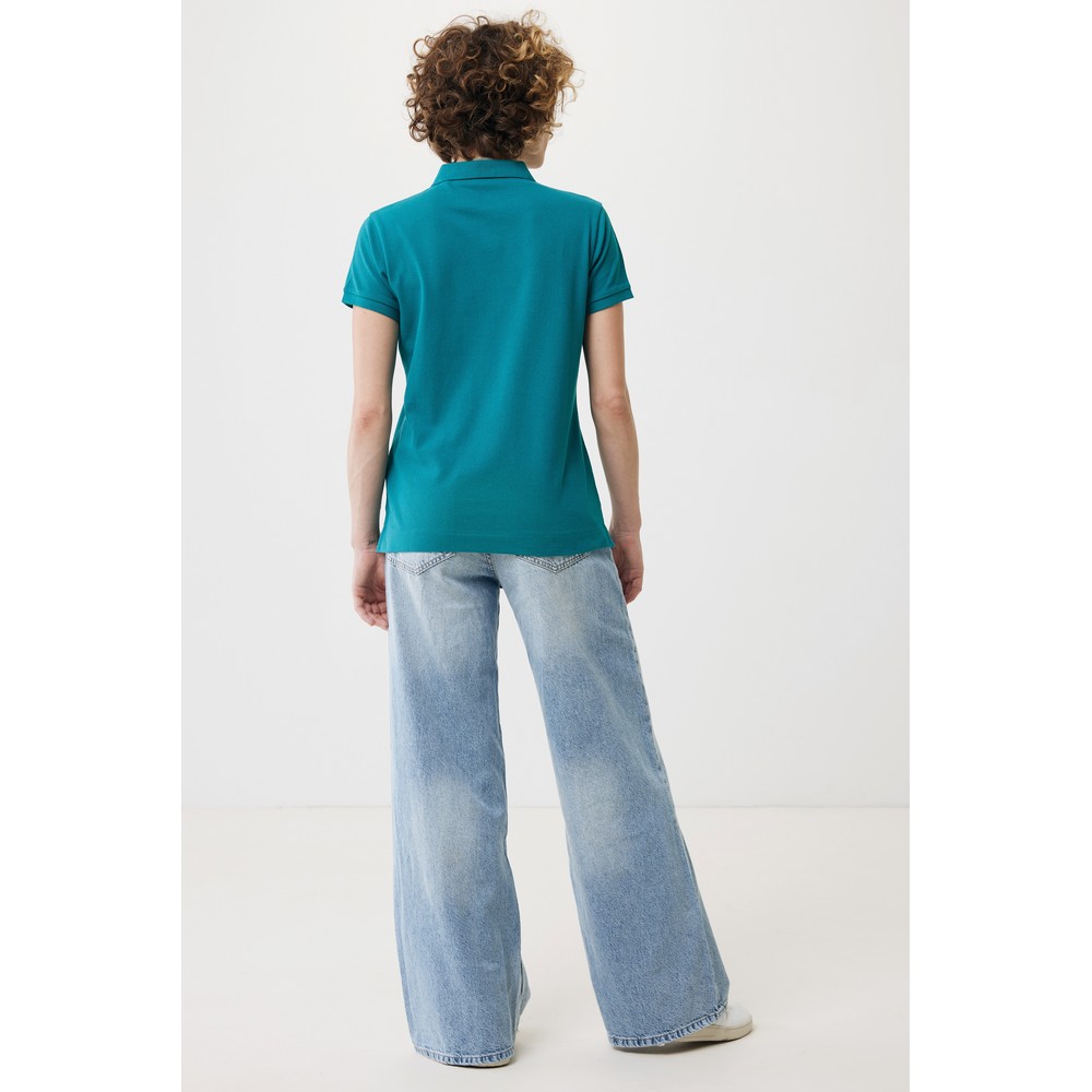 Koszulka polo, damska, zapięcie na 3 guziki, krój medium, splot Pique, krótkie rękawy, wykonana w 50% z bawełny z recyklingu i w 50% z bawełny organicznej o gramaturze 220 g/m2, bez dodatku poliestru, posiada wbudowany znacznik AWARE™, który potwierdza wykorzystanie materiałów z recyklingu, posiada kod QR na metce, który prowadzi do cyfrowego paszportu produktu, 2% wpływów z każdego sprzedanego produktu jest przekazywane na rzecz Water.org