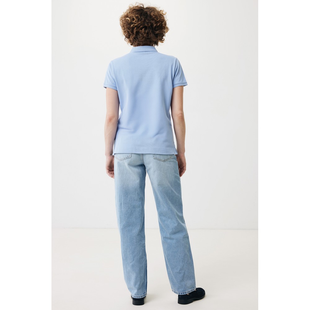 Koszulka polo, damska, zapięcie na 3 guziki, krój medium, splot Pique, krótkie rękawy, wykonana w 50% z bawełny z recyklingu i w 50% z bawełny organicznej o gramaturze 220 g/m2, bez dodatku poliestru, posiada wbudowany znacznik AWARE™, który potwierdza wykorzystanie materiałów z recyklingu, posiada kod QR na metce, który prowadzi do cyfrowego paszportu produktu, 2% wpływów z każdego sprzedanego produktu jest przekazywane na rzecz Water.org