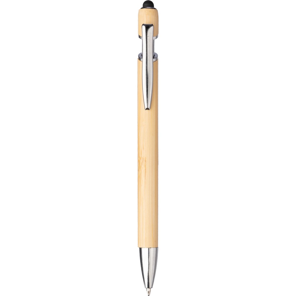 Długopis z metalowym klipem, można go przyczepić do notatnika lub koszuli, posiada czarny wkład, produkt wykonany z bambusa
