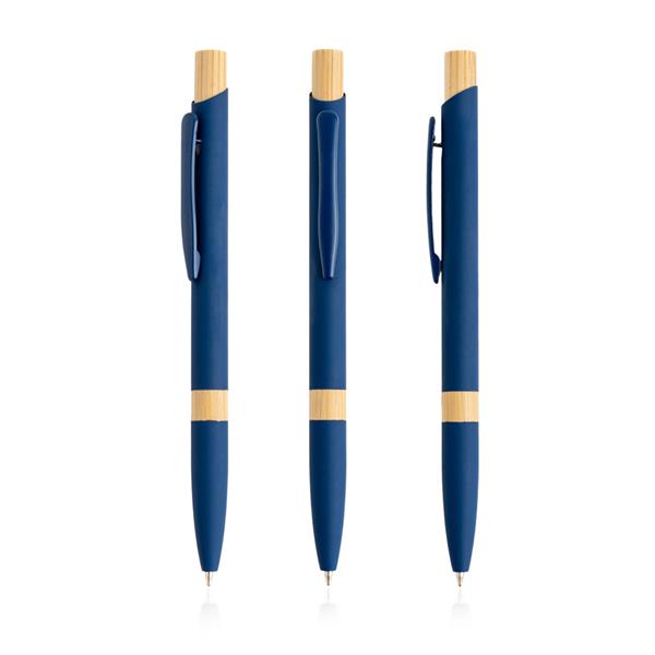 Długopis aluminiowy z bambusowymi detalami.