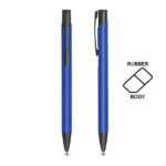 Długopis aluminiowy z gumowaną powierzchnią, z mechanizmem wciskanym, pisze na niebiesko.