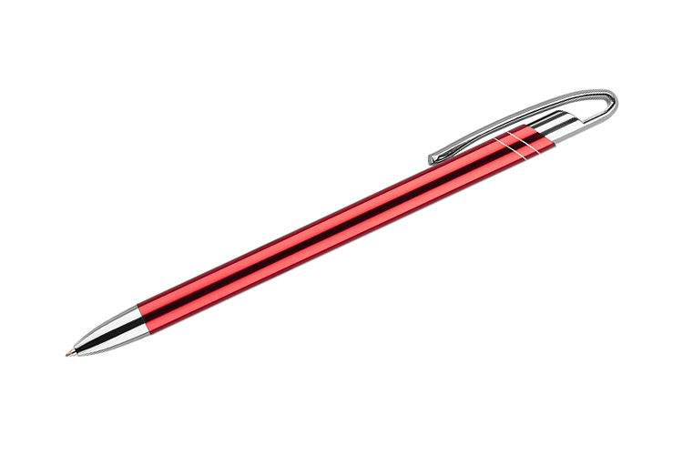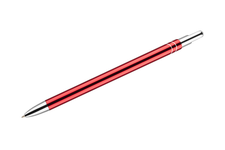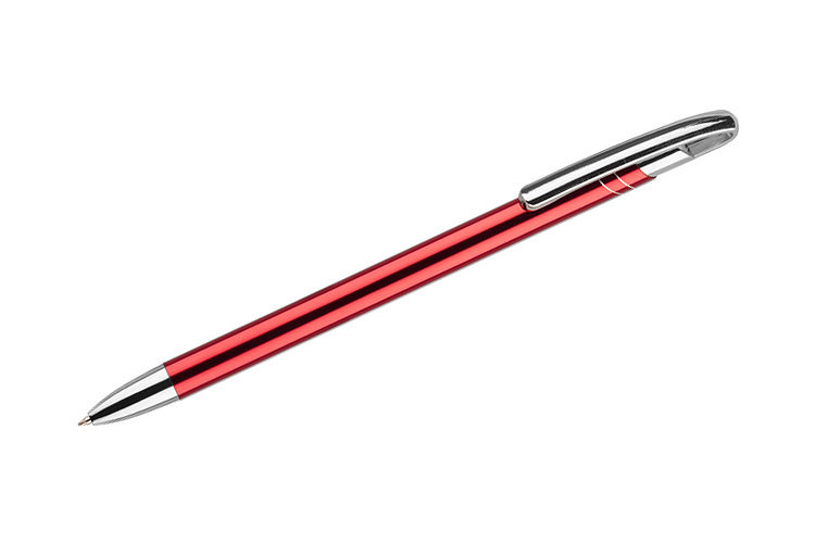 Cienki i zgrabny metalowy długopis w kolorze o metalicznym wykończeniu.