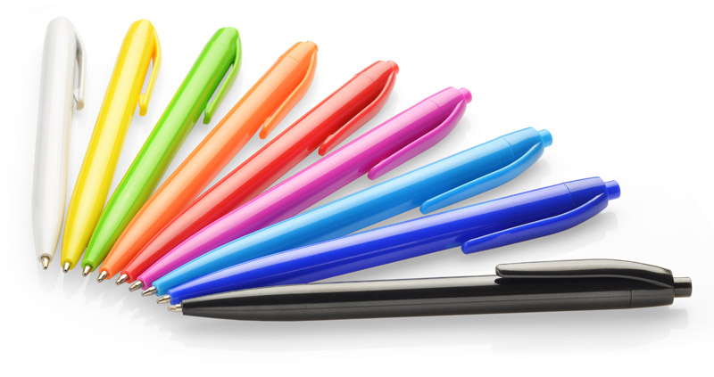 Plastikowy długopis BASIC z niebieskim wkładem.