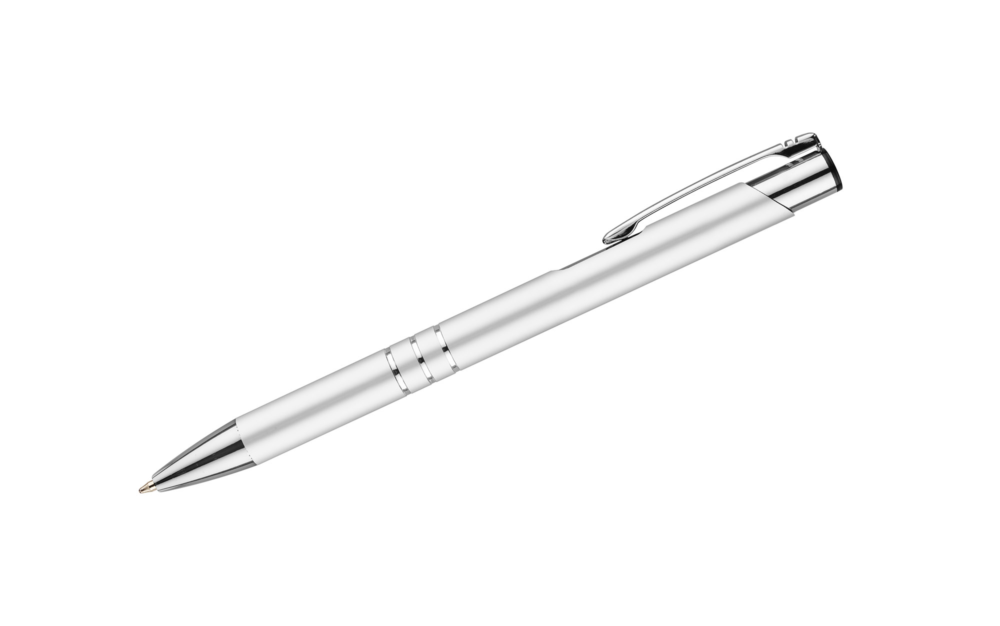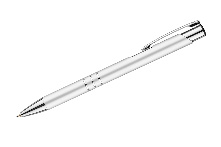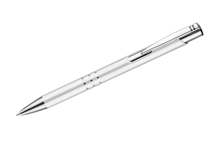 Metalowy długopis o metalizowanej chromowanej powierzchni.
