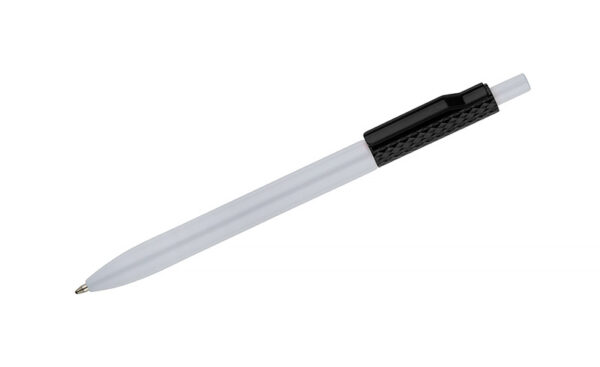 Długopis KARBI wykonany jest z tworzywa i wykończony błyszczącym lakierem. Jego charakterystycznym elementem jest karbowana struktura górnej części korpusu oraz klip w tym samym kolorze, tworzące spójną całość. Mechanizm automatyczny zapewnia wygodę użytkowania, a wkład typu X20 o grubości pisania 1,0 mm gwarantuje płynny zapis. Prosty i nowoczesny design sprawia, że KARBI to praktyczny gadżet reklamowy, idealny do codziennego użytku i znakowania logo.