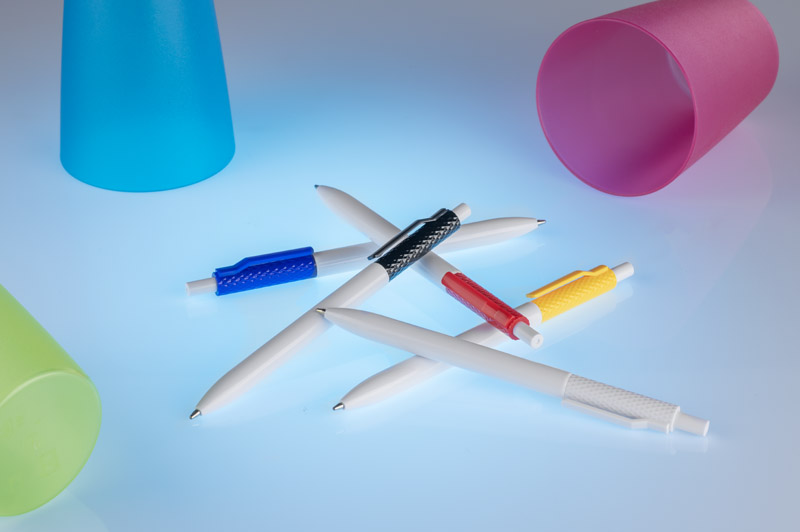 Długopis KARBI wykonany jest z tworzywa i wykończony błyszczącym lakierem.