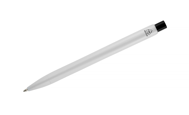 Długopis KLIBO wykonany jest z tworzywa rABS w klasycznym białym kolorze, z lakierowanym wykończeniem.