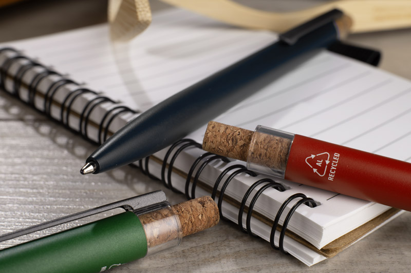 W tym modelu zastosowano przede wszystkim recyklingowane aluminium*, korek*.