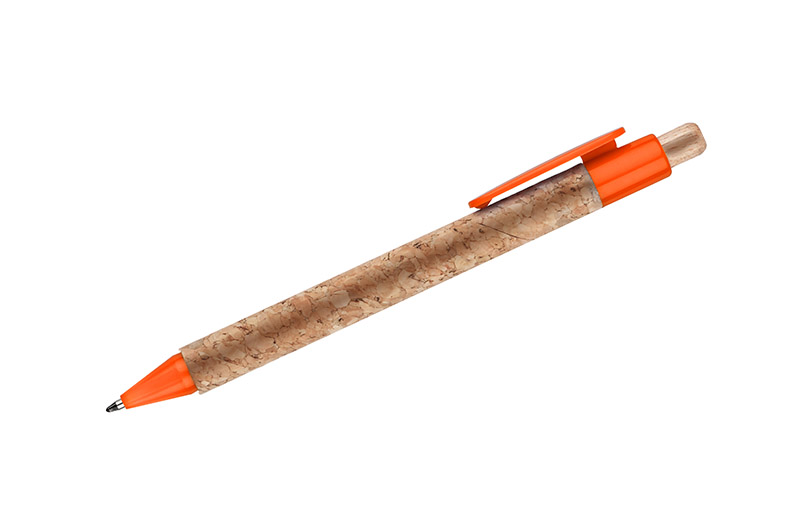 Długopis KORTE nawiązuje swoim wyglądem do idei recyclingu. Korpus został wykonany z naturalnego korka, a przycisk z drewna. Wykończenia z tworzywa sztucznego w żywych kolorach dodają mu uroku. Wkład w kolorze niebieskim.