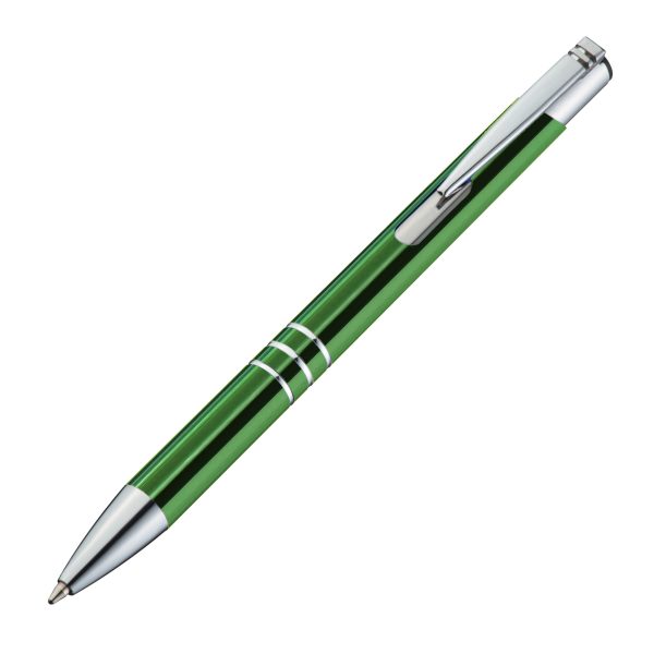 Długopis metalowy to wyjątkowy wybór dla tych, którzy cenią sprawdzone gadżety w atrakcyjnej cenie. Wykonany z aluminium, długopis ten jest dobrze wyważony w dłoni, dzięki czemu możesz nim pisać wygodnie przez dłuższy czas. Jego niebieski wkład zapewnia płynne i wyraźne pisanie, a mechanizm na `klik` gwarantuje szybkie i łatwe wysuwanie wkładu.Długopis charakteryzuje się srebrnym wykończeniem klipsu oraz trzema ringami, które elegancko dekorują jego korpus.
