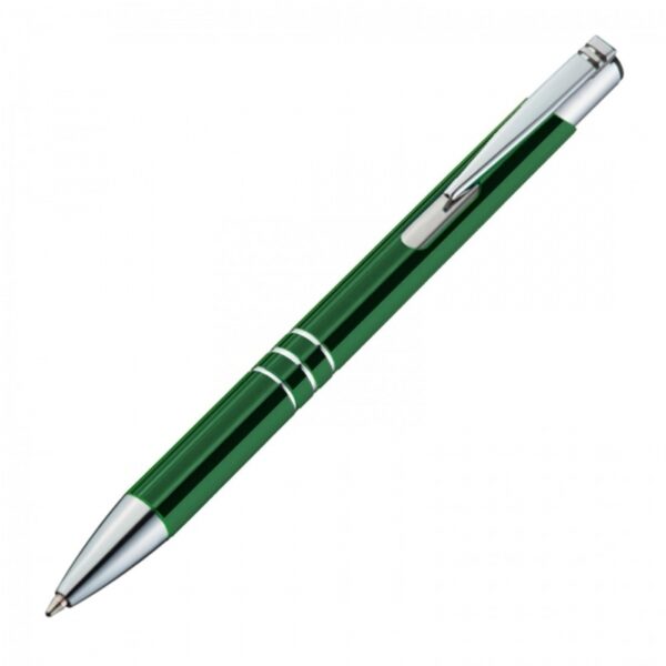 Długopis metalowy to wyjątkowy wybór dla tych, którzy cenią sprawdzone gadżety w atrakcyjnej cenie. Wykonany z aluminium, długopis ten jest dobrze wyważony w dłoni, dzięki czemu możesz nim pisać wygodnie przez dłuższy czas. Jego niebieski wkład zapewnia płynne i wyraźne pisanie, a mechanizm na `klik` gwarantuje szybkie i łatwe wysuwanie wkładu.Długopis charakteryzuje się srebrnym wykończeniem klipsu oraz trzema ringami, które elegancko dekorują jego korpus.