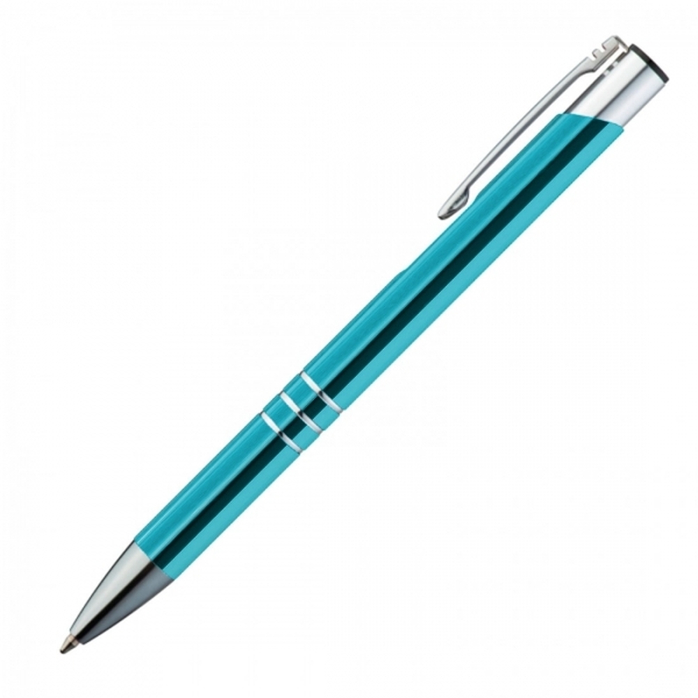 Długopis metalowy to wyjątkowy wybór dla tych, którzy cenią sprawdzone gadżety w atrakcyjnej cenie. Wykonany z aluminium, długopis ten jest dobrze wyważony w dłoni, dzięki czemu możesz nim pisać wygodnie przez dłuższy czas. Jego niebieski wkład zapewnia płynne i wyraźne pisanie, a mechanizm na `klik` gwarantuje szybkie i łatwe wysuwanie wkładu.Długopis charakteryzuje się srebrnym wykończeniem klipsu oraz trzema ringami, które elegancko dekorują jego korpus.