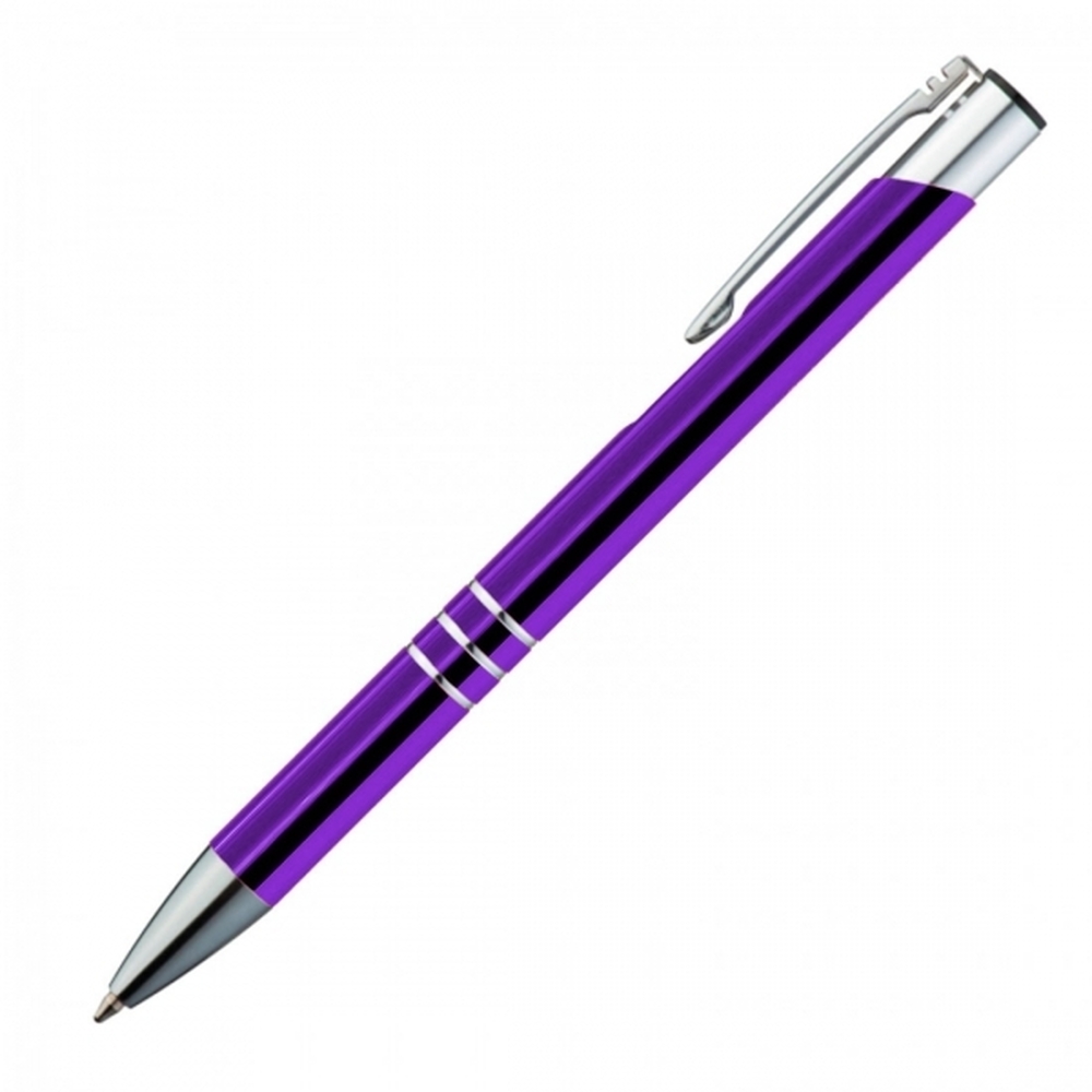 Długopis metalowy to wyjątkowy wybór dla tych, którzy cenią sprawdzone gadżety w atrakcyjnej cenie. Wykonany z aluminium, długopis ten jest dobrze wyważony w dłoni, dzięki czemu możesz nim pisać wygodnie przez dłuższy czas. Jego niebieski wkład zapewnia płynne i wyraźne pisanie, a mechanizm na `klik` gwarantuje szybkie i łatwe wysuwanie wkładu.Długopis charakteryzuje się srebrnym wykończeniem klipsu oraz trzema ringami, które elegancko dekorują jego korpus.