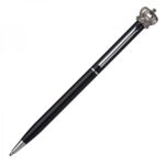 Metalowy długopis z koroną to eleganckie i luksusowe akcesorium, które łączy funkcjonalność z wyjątkowym designem. Wyposażony w mechanizm obrotowy oraz wkład piszący na niebiesko, zapewnia płynne i komfortowe pisanie. Zakończony koroną i kryształkiem Swarovskiego, dodaje długopisowi szlachetnego charakteru, który z pewnością przyciąga wzrok.Idealny do biura, na prezent lub jako wyjątkowy dodatek do codziennego użytku, ten długopis łączy elegancję z niezawodnością, czyniąc każdą notatkę wyjątkową.