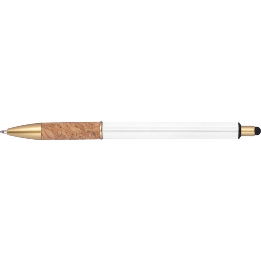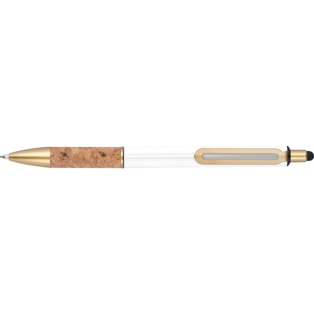 Metalowy długopis z złotymi elementami i korkową strefą uchwytu to elegancka propozycja, która łączy nowoczesny design z naturalnymi akcentami. Wyposażony w gumkę do obsługi ekranów dotykowych oraz wkład piszący na niebiesko, zapewnia wygodę i płynność pisania, a także umożliwia wygodne korzystanie z urządzeń mobilnych.Idealny do biura, na prezent czy do codziennych notatek, ten długopis łączy estetykę, funkcjonalność i komfort, stając się niezawodnym narzędziem w każdej sytuacji.